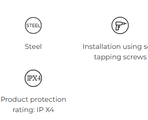 • Robust construction — steel housing coated with black polymer enamel ensures durability and corrosion resistance.