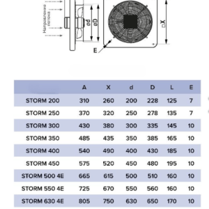 The STORM 4-pole ERA PRO overhead axial fan is a high-performance ventilation solution designed to deliver large volumes of air in systems with relatively low resistance. Equipped with a protective mesh and a square mounting plate, this fan is ideal for a wide range of exhaust or supply-and-exhaust applications.