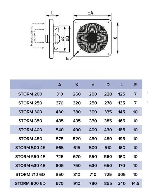 Wall-ceiling axial fan with mounting plate, STORM 450-4 pole