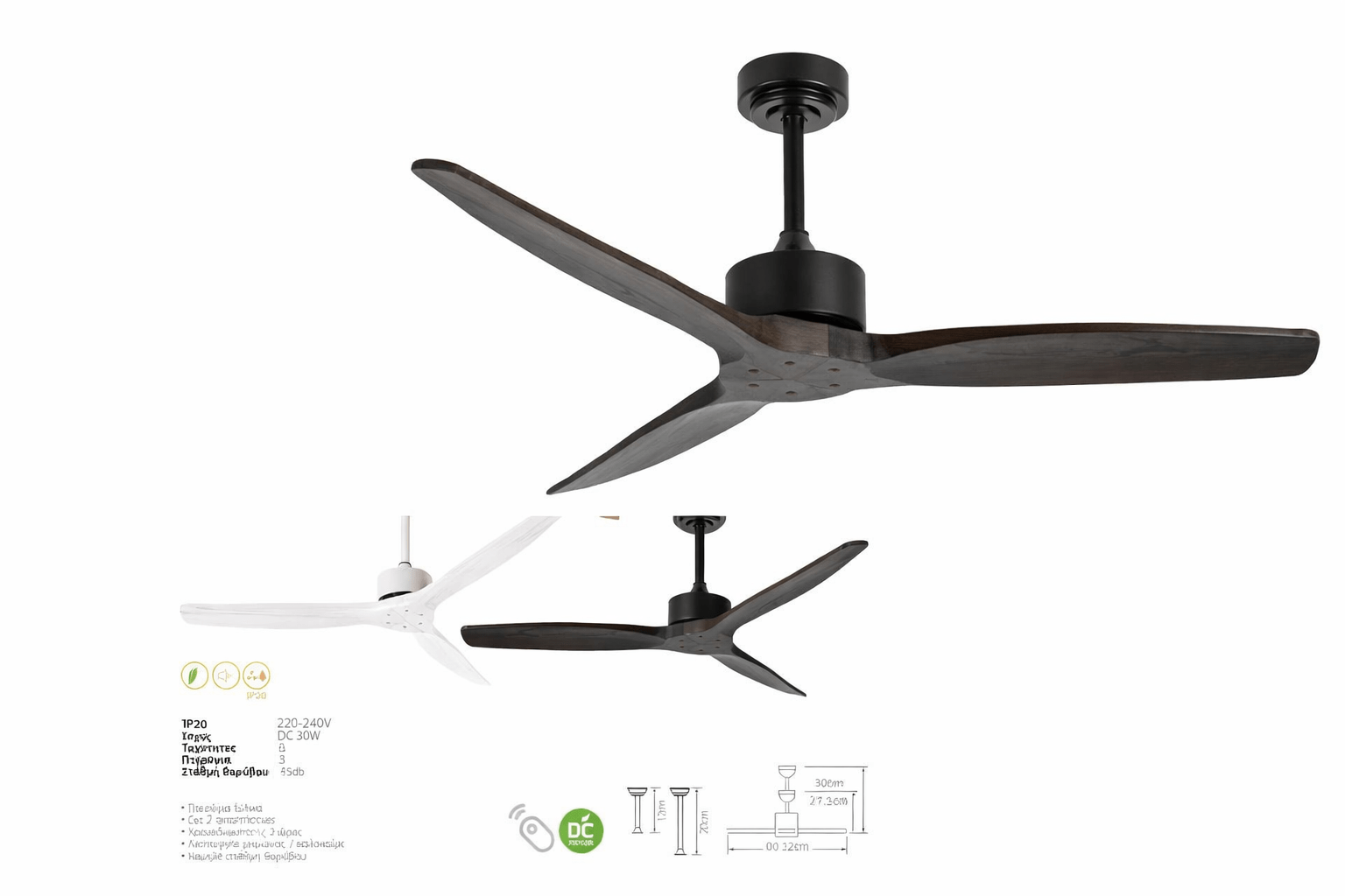 Lineme Alessa Ceiling Fan 130cm with Remote Control – Black / Dark Wood