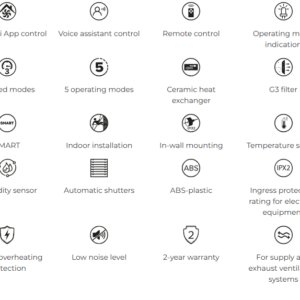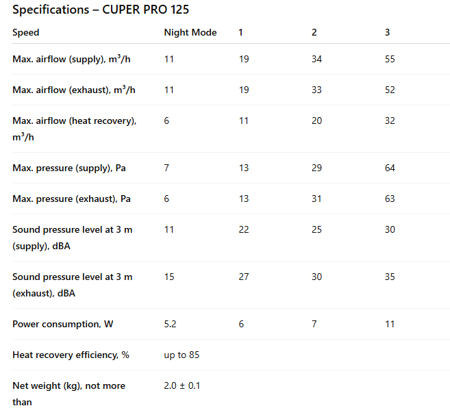 The CUPER PRO is a modern and intelligent ventilation solution with heat recovery, designed to provide fresh and clean air without energy loss. Outdoor air passes through a special heat exchanger, where it is preheated by the warm exhaust air from indoors. This way, you save energy in winter by keeping the heat inside, and in summer you enjoy fresh air without drafts.