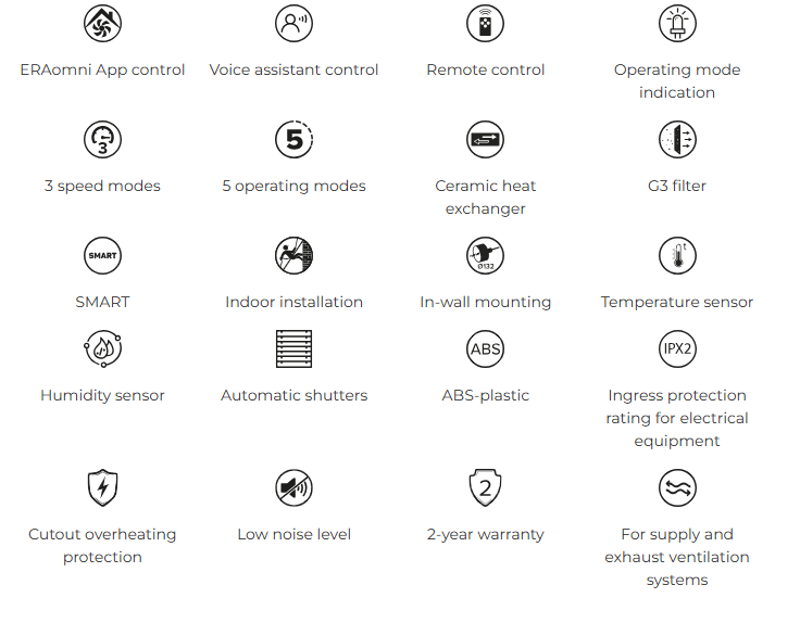 Smart control: Operate the unit via the ERAomni mobile app, voice assistants (Alisa, Marusia, Sber Salut), remote control, or touch panel.