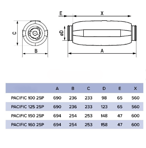 Round Duct Fan PACIFIC 100 2SP- 2 speeds