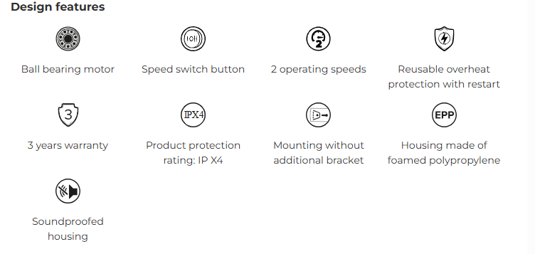 • High performance: Airflow capacity from 180 to 250 m³/h.