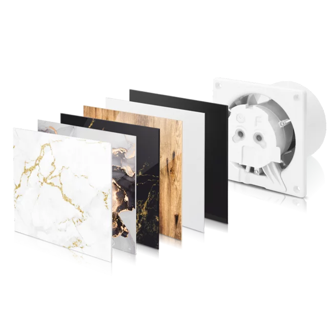 The dRim fan with removable panels adapts to any room in your home. The front of the fan has a panel holder that for decotartive panel thet covers the inlet, leaving a pleasant impression of a interior element. There is a choice of glass and polymer panels in the variety of colours that will make the room elegant. We have satinline  which are difficult to get dirty, gloss line for extra clean effect, industial line for chrome details and nature line with fashionable prints. The decor replacement system is simple and allows you to wash or change the front whenever you need to. The special safety click system and the ball bearings allow our dRim to be mounted on the ceiling.