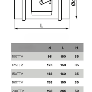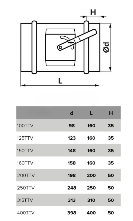 The TTV  throttle valve is a durable and reliable round duct damper made of galvanized steel with plastic bushings. It is designed to regulate the flow of supply, recirculated, or exhaust air in ventilation and air conditioning systems with operating pressures up to 1500 Pa.