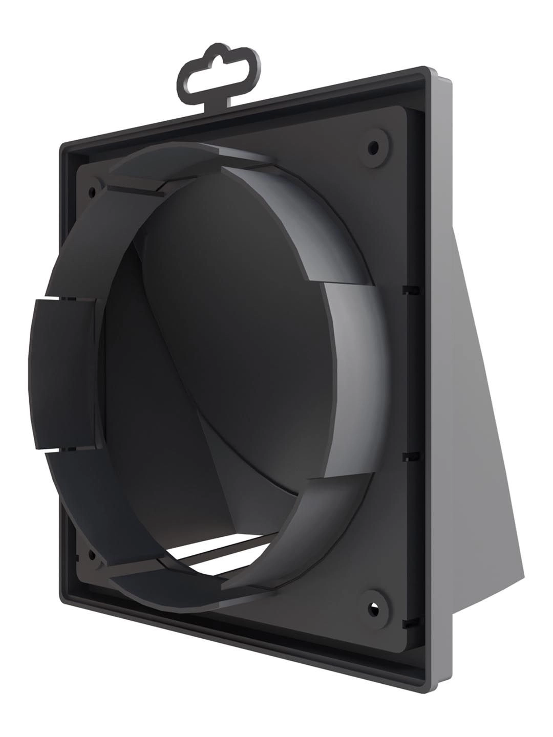 The KFV wall-mounted exhaust outlet is designed for efficient air extraction in ventilation systems. It features a built-in gravity damper that automatically closes when the fan is off, preventing unwanted backdrafts, dust, or insects from entering.