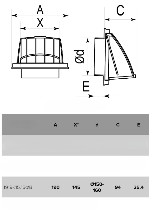 Grille plastic KFV1919 190×190, Ø150/160 with check valve, gray