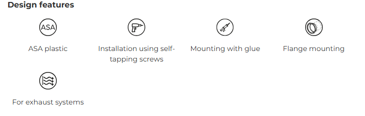 Its two-part construction makes installation and cleaning simple, while the flanged design ensures a secure fit to ventilation ducts. The KFV outlet is fixed in place with self-tapping screws for a tight and stable connection.
