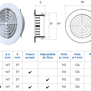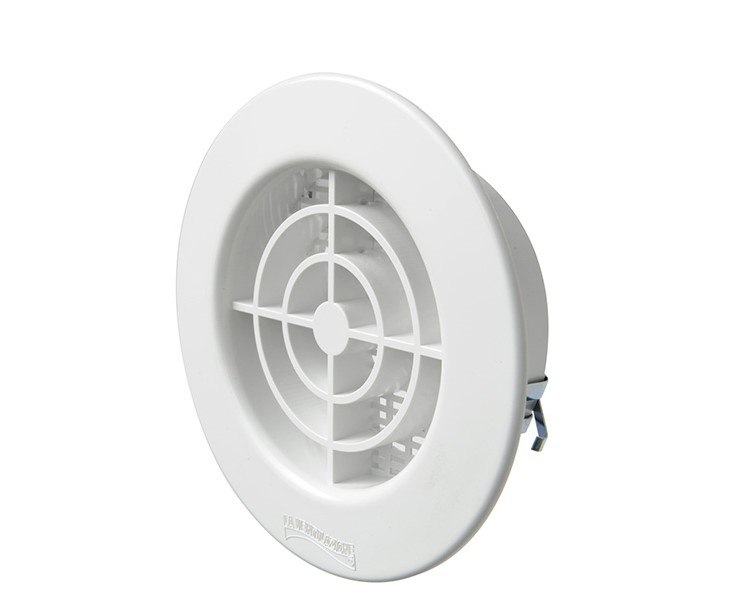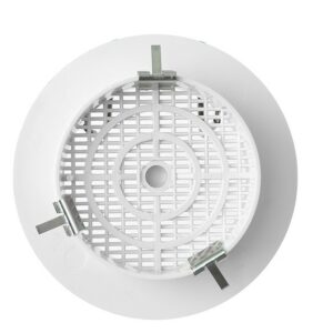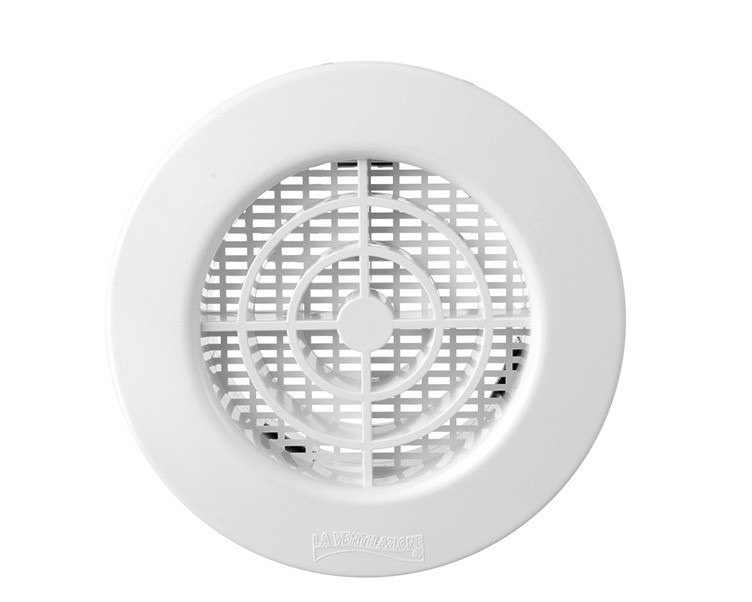 • Round recessed ventilation grille with flat flaps, made of durable ABS plastic in white color.