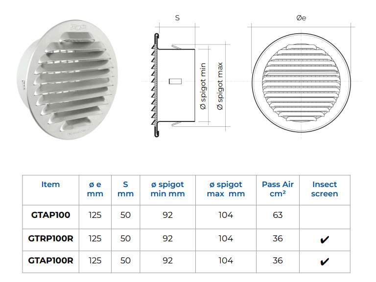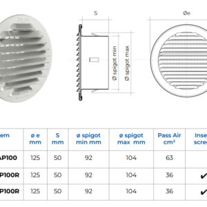 • Plastic Spigot Adapter: Facilitates easy connection to ventilation ducts and ensures a secure, airtight fit.