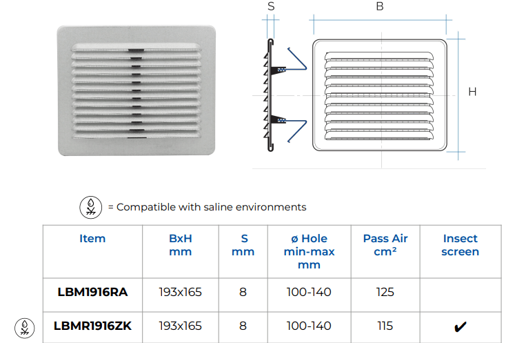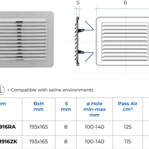 • Rectangular metal ventilation grille with flexible fixing springs.