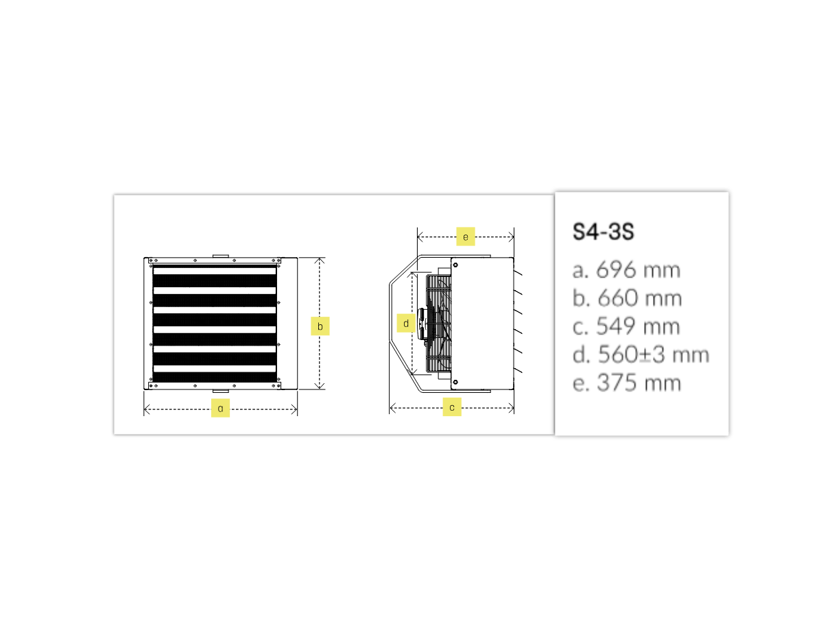 S4-3S / WHS4-3S-1787 is the most powerful unit in the S-3S series, delivering exceptional heating performance for large industrial and logistics spaces.