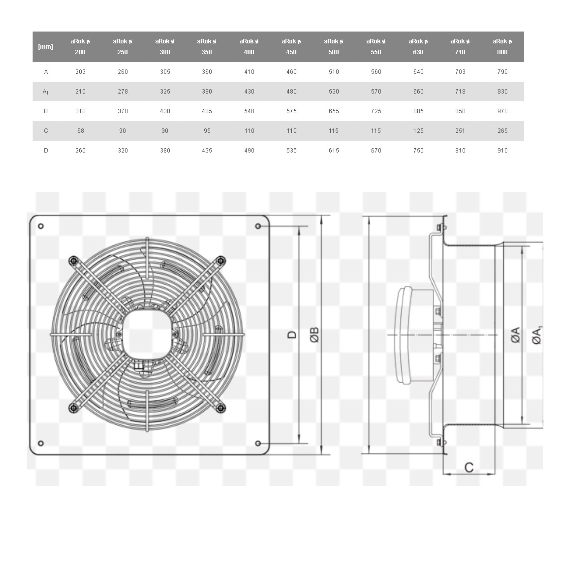 Οι ανεμιστήρες aRok είναι σχεδιασμένοι για τοποθέτηση σε τοίχο και προορίζονται για χρήση σε επαγγελματικούς και βιομηχανικούς χώρους. Σε αντίθεση με τη σειρά aRos, οι ανεμιστήρες aRok διαθέτουν τετράγωνο περίβλημα. Και οι δύο σειρές διατίθενται σε διαστάσεις από Ø200 mm έως Ø800 mm.
