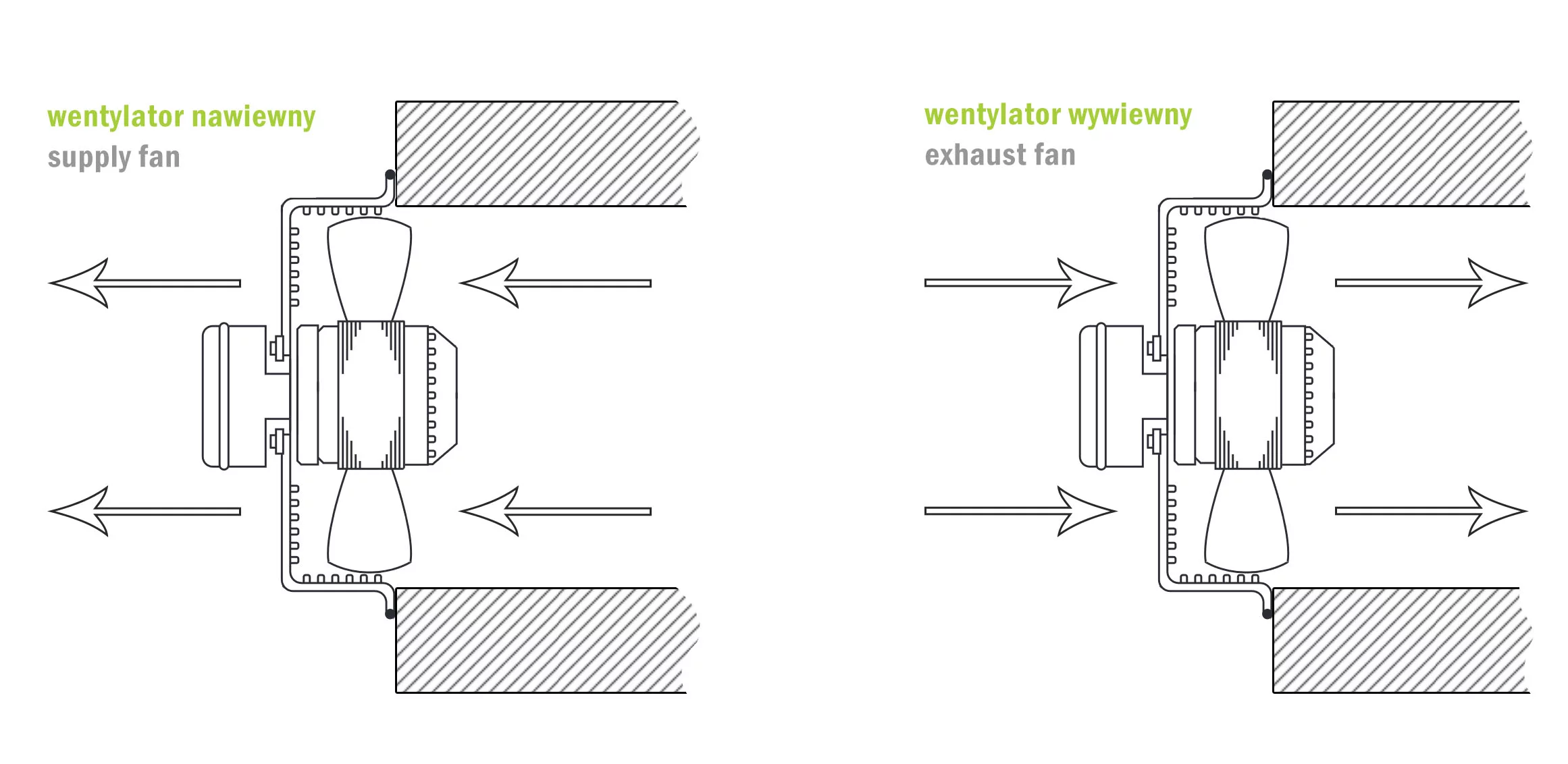 Η βασική έκδοση των ανεμιστήρων aRok είναι εξαγωγής αέρα. Διατίθεται επίσης έκδοση προσαγωγής αέρα κατόπιν παραγγελίας.